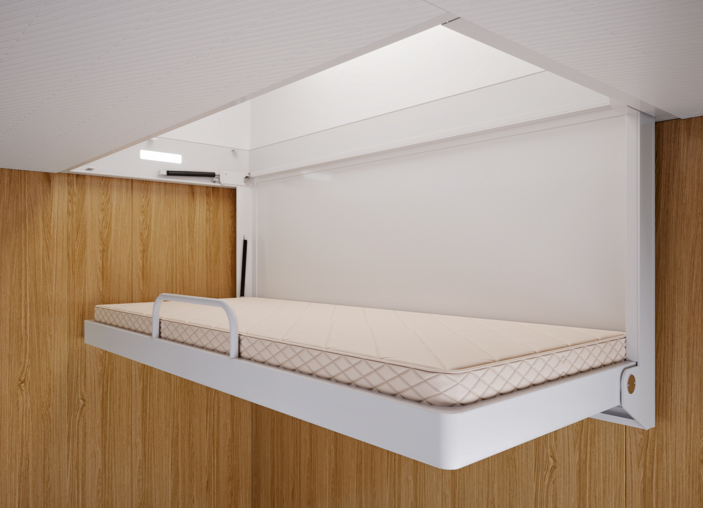 鋁合金翻板床、沙發(fā)床和吸頂式翻板床:是我們公司研發(fā)的專利產(chǎn)品,主要用于豪華郵輪、客滾船,翻板床安裝在起居艙室艙壁上,可以折疊,沙發(fā)床折疊后可以替代沙發(fā)使用,開(kāi)啟可以當(dāng)床使用,吸頂式翻板床可以收進(jìn)天花板,開(kāi)啟與閉合具有助力緩沖功能,充分利用和節(jié)省了船舶起居空間,安全、方便、美觀。每個(gè)系列產(chǎn)品都能滿足靜載荷、動(dòng)載荷及疲勞試驗(yàn)等內(nèi)控標(biāo)準(zhǔn),使用壽命可達(dá)20年以上,因產(chǎn)品品質(zhì)高端、價(jià)格合理,產(chǎn)品一經(jīng)推出,迅速占領(lǐng)國(guó)內(nèi)市場(chǎng)。
