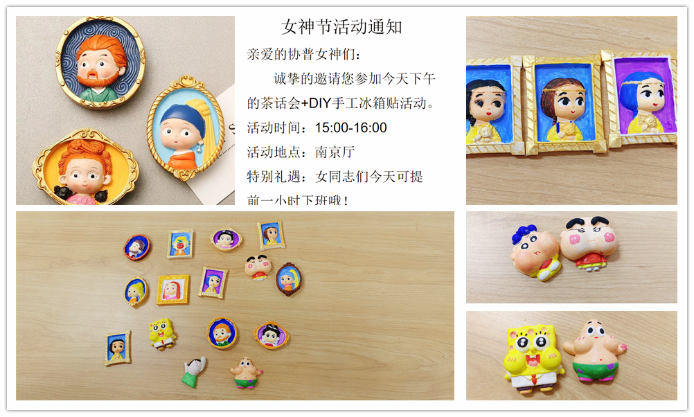 2023年3月8日,值此婦女節(jié)到來之際,協(xié)普不僅為在廠的各位女士準備了暖心的生活禮品,還將大家聚在一起舉辦了輕松愉快的手繪活動。現(xiàn)場氣氛歡快,大家悠閑地完成了各自的手繪冰箱貼,活動結束后全體女同志提前下班,開心地結束了一天的工作。